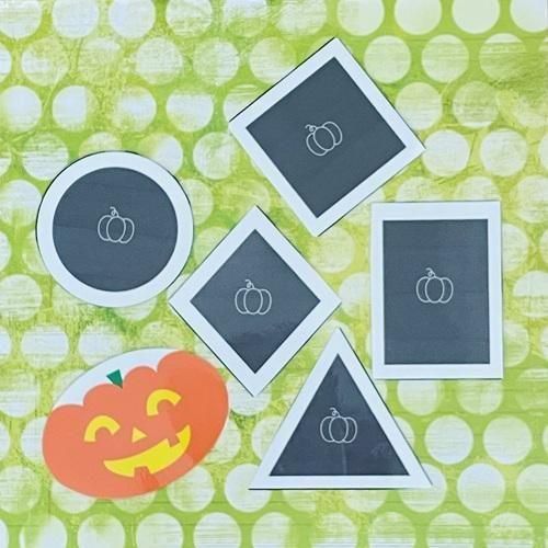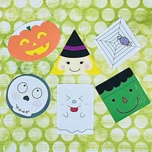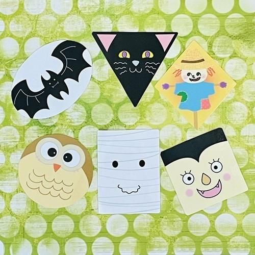 色々な形のカードを裏返すと可愛いハロウィンキャラクターが隠れています!
